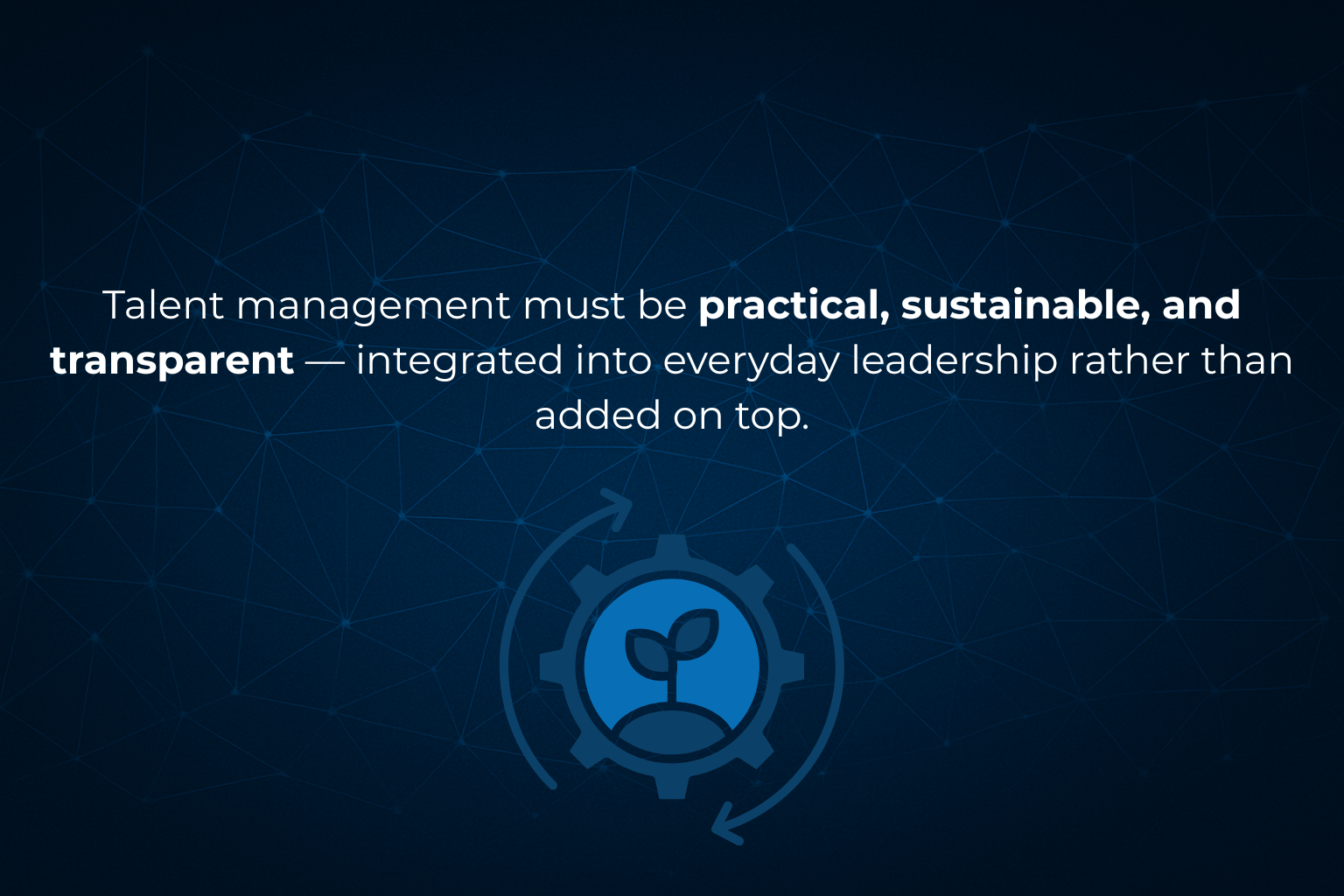 Takeaway: Talent management must be practical, sustainable, and transparent — integrated into everyday leadership rather than added on top.